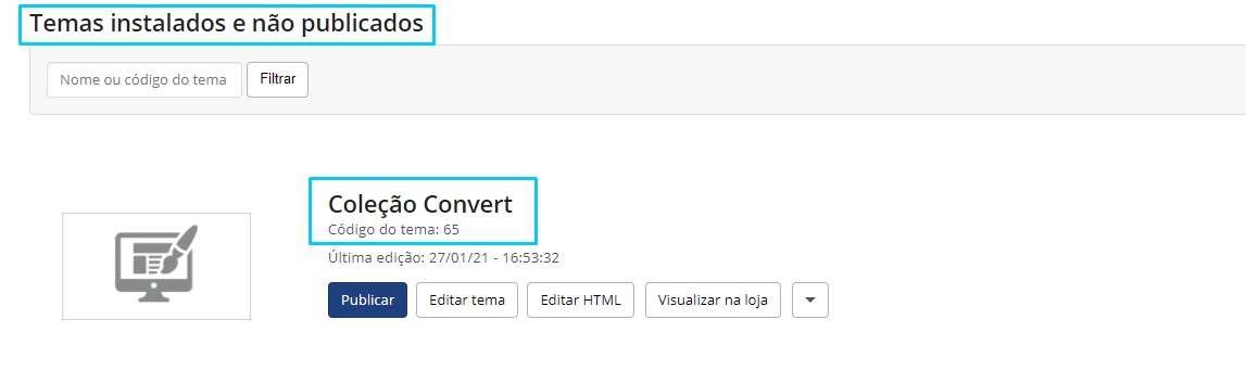 E não se preocupe, todos as personalizações e alterações que você fez no seu tema antigo ainda estarão disponíveis nessa mesma página, na parte de Temas Instalados e não publicados.